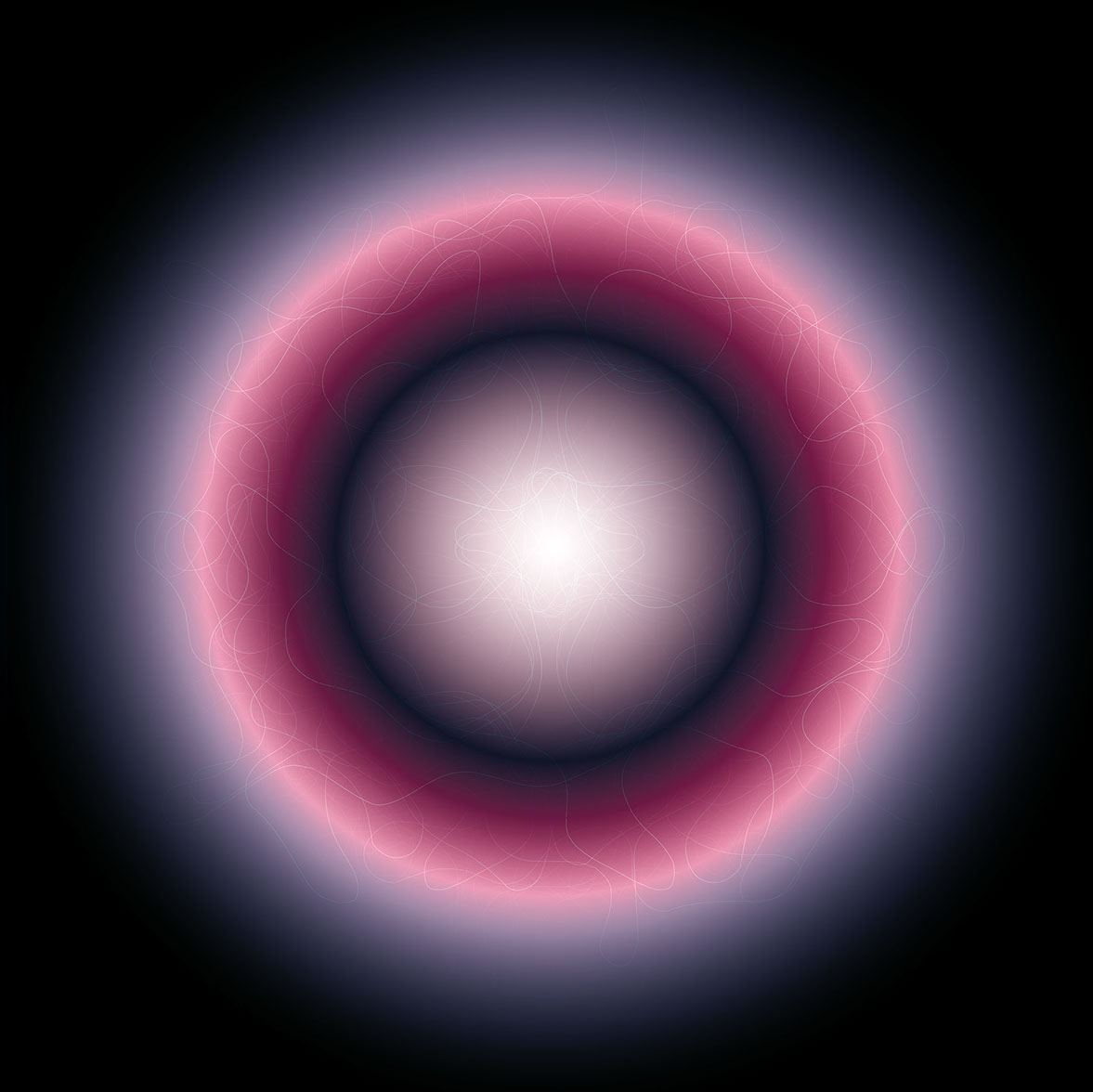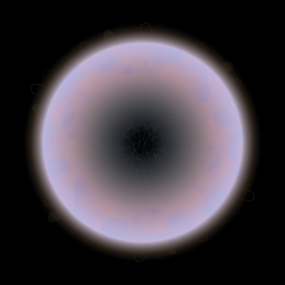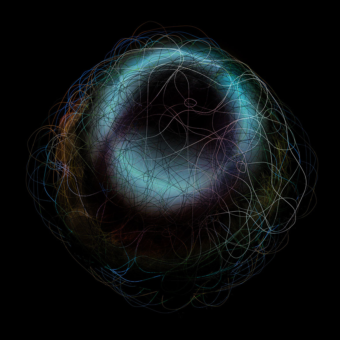 In "celestial bodies" from 2020/21, the finesse of form-finding in digital processes is taken even further. A mesh of lines is given apparent three-dimensionality by virtually placed light sources and clouds of color. In numerous variations of these line tangles, shifts of foreground and background, density and depth are depicted. The eye accustomed to images recognizes the kinship with the fascinating images of dying or emerging galaxies. The celestial bodies of Birthe Blauth were born in her mind. They get their captivating, scientifically seeming stringency through the perfection of the execution