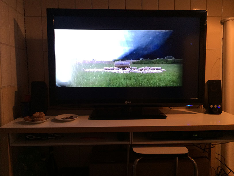 The video shows the Earth as a piece of meadow on which sheep peacefully graze, unaware of the cosmic machinery operating around them. The cosmic mill turns first in one direction, then in the other, alternating with the passage of time. With each change of direction, the Earth follows very slightly, almost imperceptibly. Water flows freely. The rafters of the cosmos creak under the strain but do not yet break. The sky is a cloudy sky, a silvery machine, a sea of sky, a sky of cloth. To the ancient mind, which thinks in symbols, a single object can represent all manner of things that happen in different worlds and places at the same time. But this way of thinking is unfamiliar to our modern-day world, even though its reference to the phenomena of quantum physics is highly contemporary.